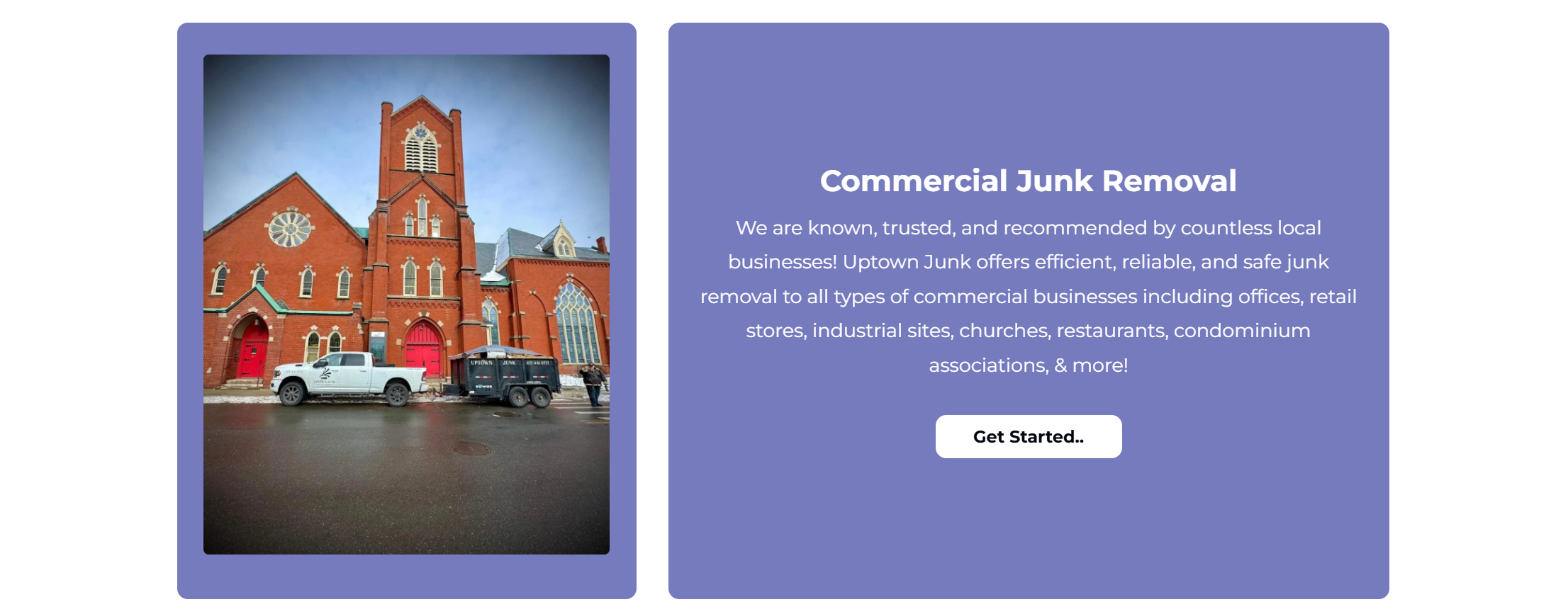 We are known, trusted, and recommended by countless local businesses! Uptown Junk offers efficient, reliable, and safe junk removal to all types of commercial businesses including offices, retail stores, industrial sites, churches, restaurants, condominium associations, & more!