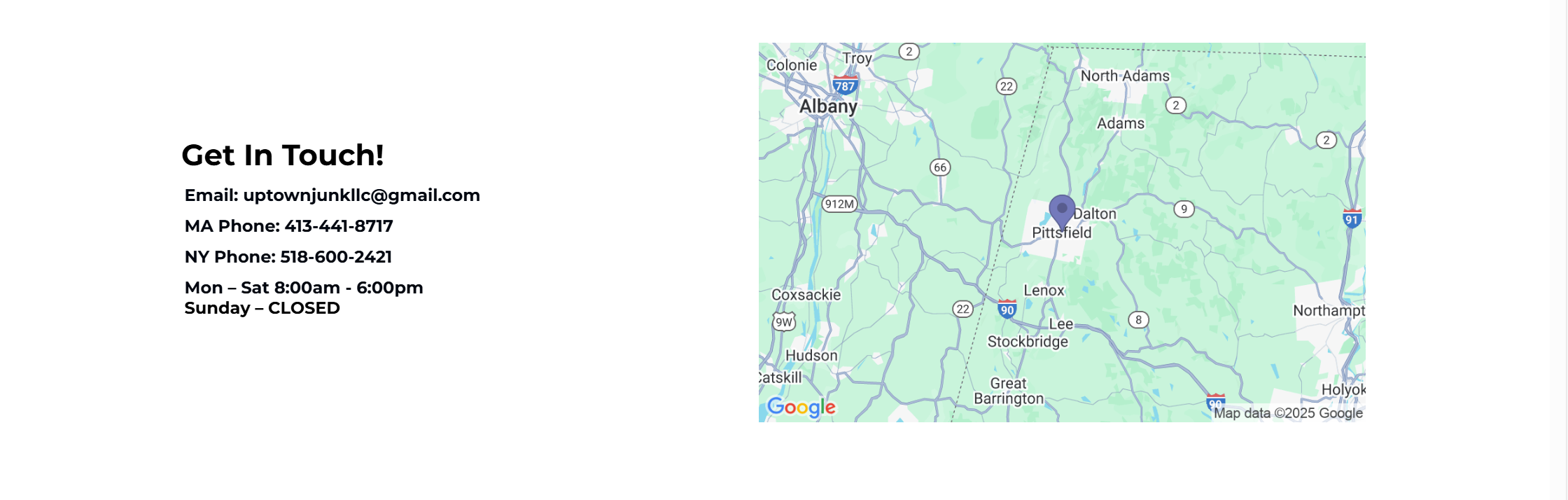 Uptown Junk offers full-service junk removal and disposal to Berkshire County and beyond! Fully insured in Massachusetts and New York State, Uptown Junk currently serves residential and commercial properties from Albany, NY to Northampton, MA.
